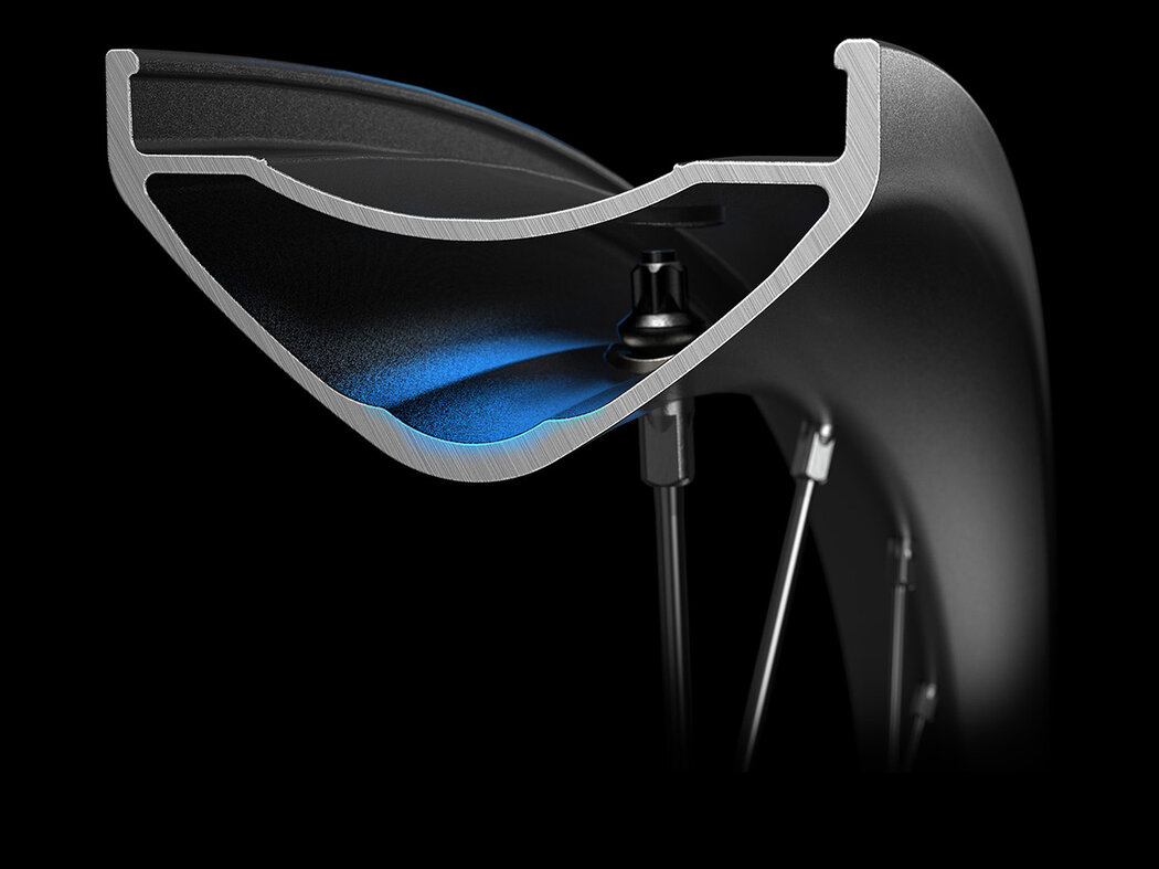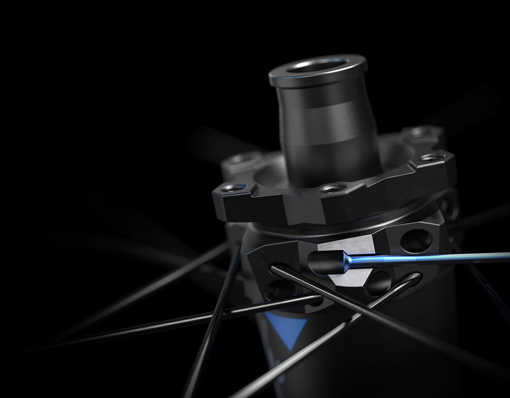Thicker spokes are used in the Hybrid wheels in comparison to the conventional MTB wheels. This Hybrid specific spoke increases both the lateral and the torsional stiffness. As previously explained in the context of the hub flange, this helps to get better lateral stiffness, more suited to the loads of eMTBs but it also increases torsional stiffness, for the transmission of the propulsion power from the hub to the rim. Furthermore, each spoke is always loaded during a rotation. This continuous and consistent load avoids fatigue of the spoke that can lead to failure.