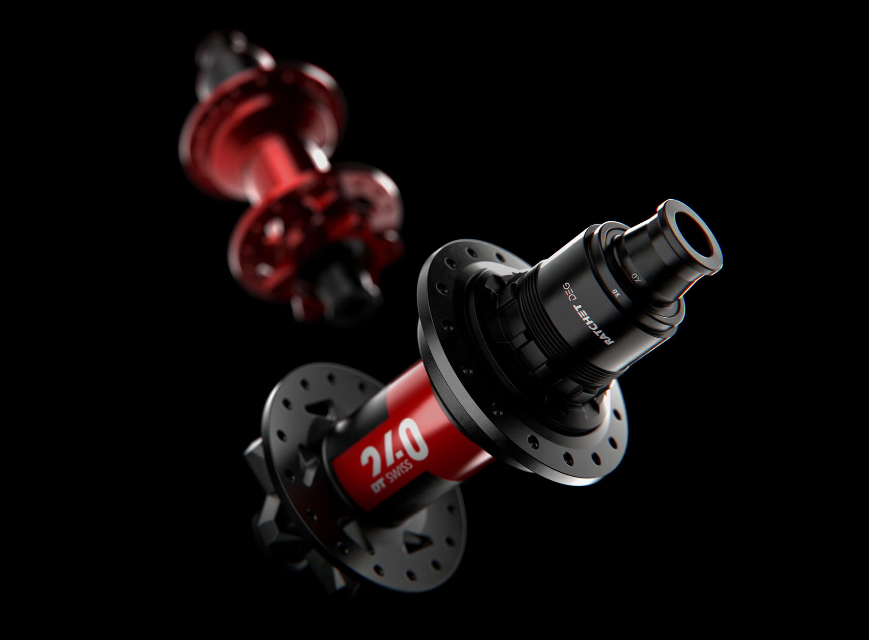 Two enlarged ratchets with 90 teeth offer the smallest engagement angle ever made in the DT Swiss portfolio: 4º. On the trail, this transmits into a different angle in the backlash. The small idle distance at the cranks allows for more direct acceleration, like out of corners, as well as the possibility to adjust the pedal position faster, like when overcoming obstacles on a technical uphill trail.