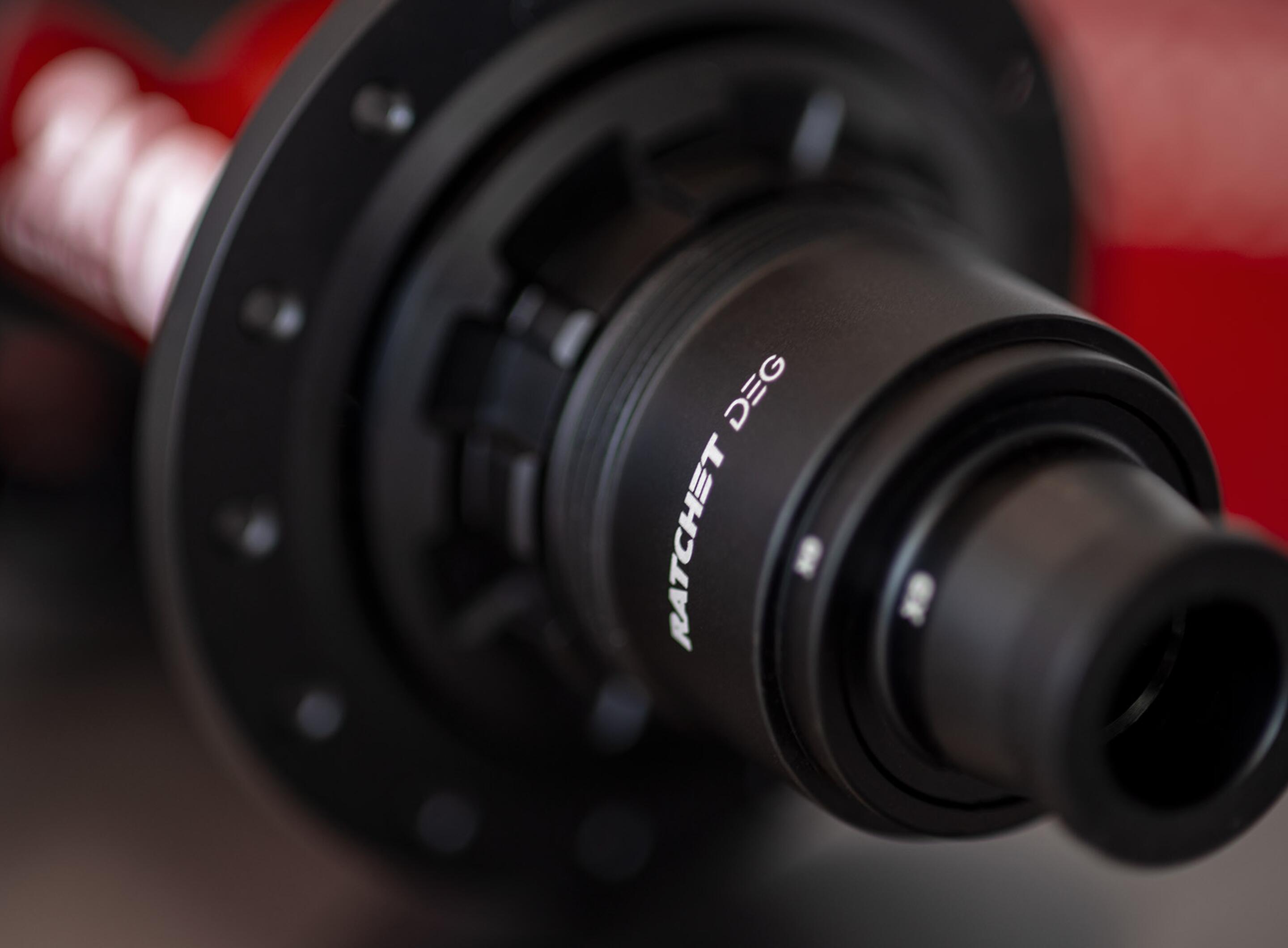 The patent pending Ratchet DEG System was designed by taking a different angle than the common high engagement freehub systems, to deliver a smaller engagement angle and maximized reliability. The simultaneous full engagement of the ratchets provides a larger contact patch than pawl hubs and thus a more balanced load distribution, resulting in higher reliability.